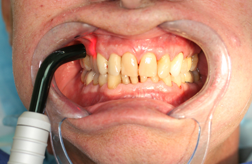 L’état initial signale un début de parodontite ... Le rayonnement laser stoppera la maladie